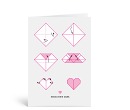 "Danke" kann man auf ganz unterschiedliche Art sagen – besonders persönlich und herzlich auch mit einem Origami-Herzen. Fast genau so schön wie eine echte Bastelei ist die Anleitung dazu, die auf dieser Karte in Rosa auf hellgrauem Hintergrund abgedruckt ist. Der Schriftzug "Herzlichen Dank" rundet das originelle Design dieser Danksagung ab.