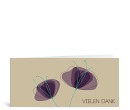 Diese Dankeskarte besticht mit ihrem Design und ihrer Farbgebung. Die beiden Mohnblumen in den Farben Lila und Türkis harmonieren perfekt mit dem beigen Hintergrund, und der dezente Schriftzug "Vielen Dank" rundet die elegante Gestaltung der Vorderseite der Klappkarte ab. Ihr geschäftliches Logo kann auf der Rückseite der Karte platziert werden.