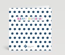 Blaue Punkte auf weißer, quadratischer Karte - mehr braucht es nicht für eine gelungene Geburtstagskarte? Aber ja, denn erst das reduzierte Punktmuster in blau bringt den bunten englischen Schriftzug „Happy Birthday“ so richtig zur Geltung und gibt dieser modernen Geburtstagskarte eine fröhliche Note! Damit Ihre internationalen Kunden und Geschäftspartner gleich auf den ersten Blick sehen, wer Ihnen so geschmackvoll zum Geburtstag gratuliert, kann Ihr Logo auf der Vorderseite platziert werden.