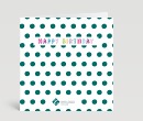 Grüne Punkte auf weißer, quadratischer Karte - mehr braucht es nicht für eine gelungene Geburtstagskarte? Aber ja, denn erst das reduzierte Punktmuster in grün bringt den bunten englischen Schriftzug „Happy Birthday“ so richtig zur Geltung und gibt dieser modernen Geburtstagskarte eine fröhliche Note! Damit Ihre internationalen Kunden und Geschäftspartner gleich auf den ersten Blick sehen, wer Ihnen so geschmackvoll zum Geburtstag gratuliert, kann Ihr Logo auf der Vorderseite platziert werden.