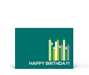 Dezent und doch fröhlich - mit dieser Postkarte liegen Sie bei Geburtstagswünschen auch an internationale Geschäftspartner und Kunden genau richtig! Die Vorderseite dieser Postkarte zum Geburtstag zieren Kerzen in verschiedenen Grün- und Grautönen sowie der weiße, englische Schriftzug "Happy Birthday!" auf grünem Hintergrund. Auf der Rückseite dieser Geburtstagspostkarte ist neben dem Adressfeld Raum für einige persönliche Zeilen und das Logo Ihrer Firma.