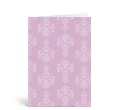 Das Design dieser Glückwunschkarte ist elegant und klassisch zugleich - und ihre fliederfarbene Farbgebung so dezent, dass die Karte für nahezu jeden Anlass geeignet ist, aus dem Sie privat oder geschäftlich gratulieren wollen. Das wiederkehrende Motiv im Stil des Barock bildet ein schönes regelmäßiges Muster. Auf Wunsch kann die Karte mit Ihrem Logo bedruckt werden.