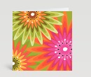 Blumen sagen oft mehr als tausend Worte - und diese Glückwunschkarte mit ihrem farbenfrohen Blumenmotiv auf dunkelgrünem Hintergrund sorgt garantiert für gute Laune! Die Vorderseite schmücken drei stilisierte Blumen in perfekt aufeinander abgestimmten Farbkombinationen in den In-Farben der 1970er Jahre - von Rot, Orange und Gelb bis zu Grün, Rosa und Lila. Eine schöne Karte für Glückwünsche jeder Art!