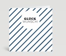 "Glückwunsch!" richten Sie mit dieser Glückwunschkarte aus. Die Gestaltung der Karte ist elegant und zurückhaltend und damit ideal für Firmen, die ihre Geschäftsfreunde, Kunden und Mitarbeitern beglückwünschen wollen. Die Vorderseite zieren diagonale dunkelblaue Streifen und der Schriftzug in einem weißen Kreis. Mit Ihrem Logo auf der Rückseite können Sie der Karte eine besondere individuelle Note geben.