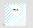 "Glückwunsch!" richten Sie mit dieser Glückwunschkarte aus. Die Gestaltung der Karte ist dezent und elegant und damit ideal für Firmen, die ihre Geschäftsfreunde, Kunden und Mitarbeitern beglückwünschen wollen. Die Vorderseite zieren diagonale hellblaue Streifen und der Schriftzug in einem weißen Kreis. Mit Ihrem Logo auf der Rückseite können Sie der Karte eine besondere individuelle Note geben.
