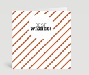 "Best Wishes!" richten Sie mit dieser Glückwunschkarte aus. Die Gestaltung der Karte ist elegant und zurückhaltend und damit ideal für Firmen, die ihren internationalen Geschäftsfreunden und Kunden zum Beispiel zum Geburtstag gratulieren wollen. Die Vorderseite zieren diagonale orangefarbene Streifen und der englische Schriftzug in einem weißen Kreis. Mit Ihrem Logo auf der Rückseite können Sie der Karte eine besondere individuelle Note geben.