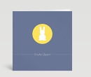 Diese elegante quadratische Osterkarte können Sie privat und geschäftlich nutzen. Über dem Schriftzug „Frohe Ostern“ ist der Umriss eines Hasen auf einem gelben Kreis zu sehen. Die schlichte Farbkombination aus Grau, Gelb und Weiß sowie die ungewöhnliche quadratische Form der Osterkarte bietet einen perfekten Ostergruß für Ihre Freunde oder die geschäftlichen Kontakte Ihrer Firma.